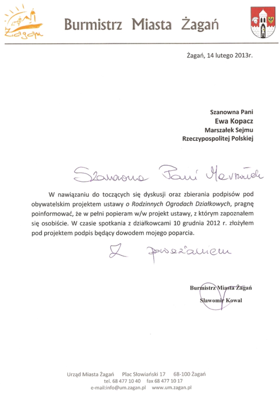 W dniu 27.09.2011 roku odbyło się poszerzone posiedzenie Zarządu ROD „Zacisze" w Żaganiu, w trakcie którego wysłuchaliśmy informacji na temat przebiegu II Kongresu Polskiego Związku Działkowców. Zapoznaliśmy się ze stanowiskami podjętymi w trakcie Kongresu i stajemy w obronie Ustawy o Rodzinnych Ogrodach Działkowych z dnia 8. 07. 2005 roku.