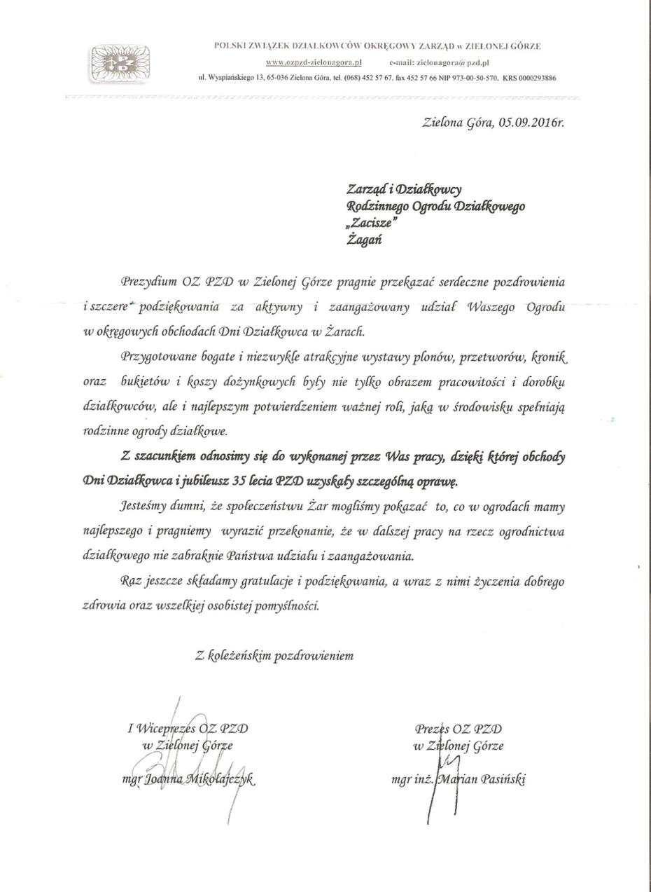 • Dzień działkowca Z. Góra